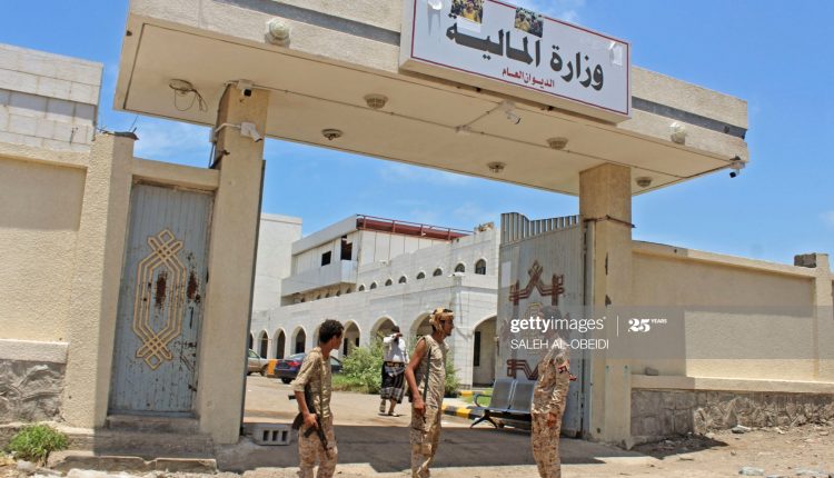 Fighters with Yemen's separatist Southern Transitional Council (STC) stand guard at the entrance of the Ministry of Finance's premises in the southern city of Aden, on April 26, 2020, after the council declared self-rule in the south. - The declaration comes as a peace deal with the government crumbled, complicating a long and separate conflict with Huthi rebels who control much of the north. (Photo by Saleh Al-OBEIDI / AFP) (Photo by SALEH AL-OBEIDI/AFP via Getty Images)