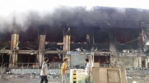بالصور حريق هائل يلتهم محلات تجارية في عدن