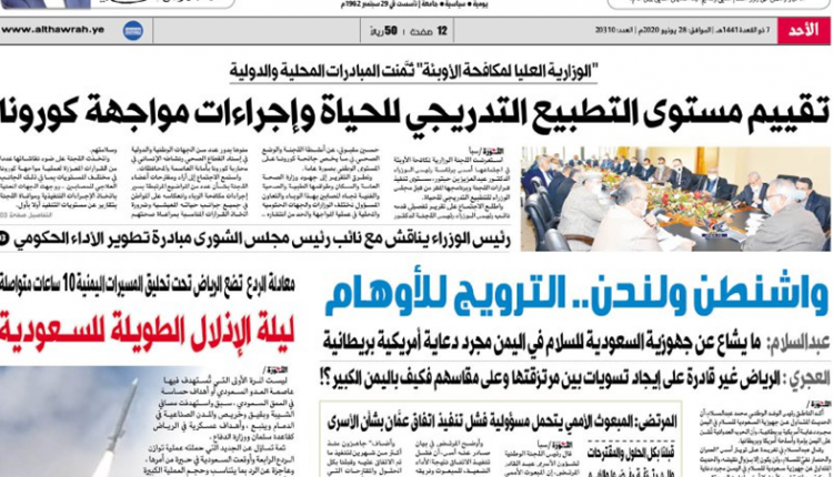 أبرز واهم عناوين الصحف اليمنية الصادرة اليوم 7/ذو القعدة/1441هـ الموافق 28- يونيو-2020م