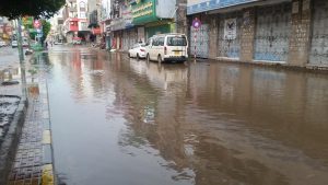 وعمت الامطار اجزاء واسعة من المدينة، بالاضافة الى امطار رعدية على ضواحي صنعاء.