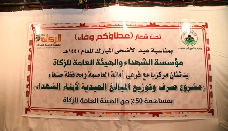 تدشين مشروع العيدية النقدية لأبناء الشهداء بمختلف المحافظات مقدمة من الزكاة ومؤسسة الشهداء