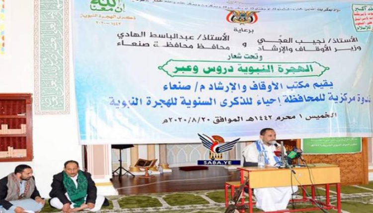 نظم مكتب الأوقاف والإرشاد بمحافظة صنعاء، اليوم الخميس، ندوة فكرية حول الهجرة النبوية على صاحبها أفضل الصلاة وأتم التسليم تحت شعار “الهجرة النبوية دروس وعبر”.