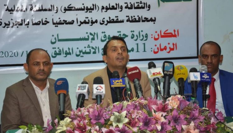 ويأتي المؤتمر الصحفي الذي نظمته وزارة حقوق الإنسان واللجنة الوطنية للتربية والثقافة والعلوم “اليونسكو” والسلطة المحلية بمحافظة سقطرى تحت شعار ” الانتهاكات والمخاطر في جزيرة سقطرى اليمنية بين العمالة والاحتلال “.