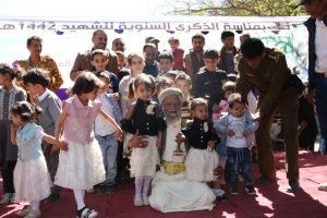 وقال المغشي: “يجب علينا أن ندخل الفرحة والبهجة إلى قلوب أبناء وأسر الشهداء، فهم يستحقون منا كل الحب والحنان والرعاية، ونحاول أن نبادل شهدائنا الوفاء بالوفاء، ولو بشيء يسير نظير استبسالهم في الدفاع عن الوطن”.