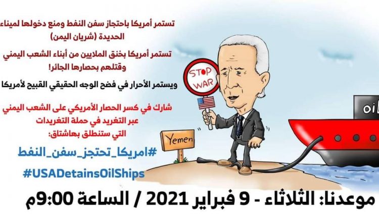 شارك بحملة تغريدات لفضح حصار أمريكا لسفن النفط ،الساعة 9 من مساء اليوم.