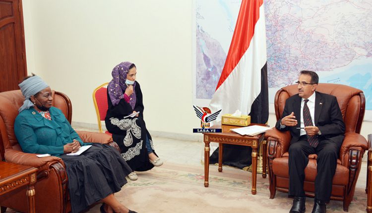 وجرى خلال اللقاء الذي حضره وزراء التخطيط عبدالعزيز الكميم والشئون الاجتماعية ووالعمل عبيد بن ضبيع والصحة العامة والسكان الدكتور طه المتوكل، مناقشة مجالات التعاون وفي المقدمة أوضاع المرأة والطفل في ظل العدوان والحصار الأمريكي السعودي على اليمن المستمر منذ ست سنوات والأضرار التي لحقت بأكبر شريحتين اجتماعيتين جراء ذلك خاصة في الجوانب الأساسية علاوة على وقوع الكثير منهم ضحايا بغارات العدوان ومرتزقته.