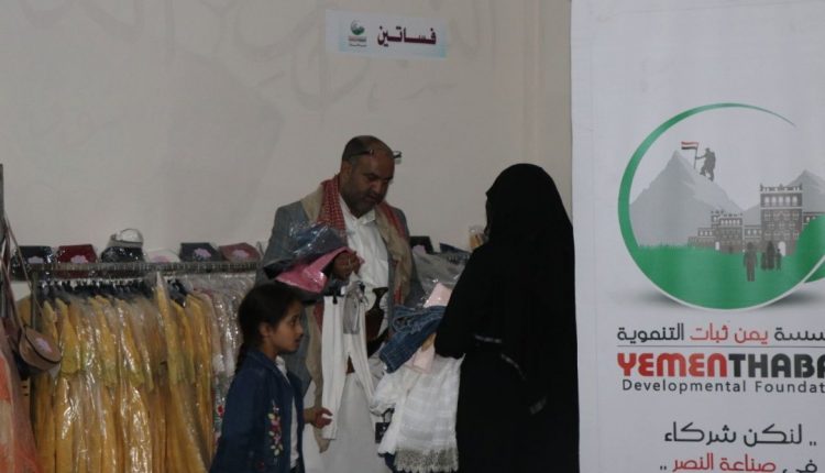 مؤسسة يمن ثبات تفتتح معرض كسوة العيد لأسر المرابطين والجرحى في الصافية بالأمانة
