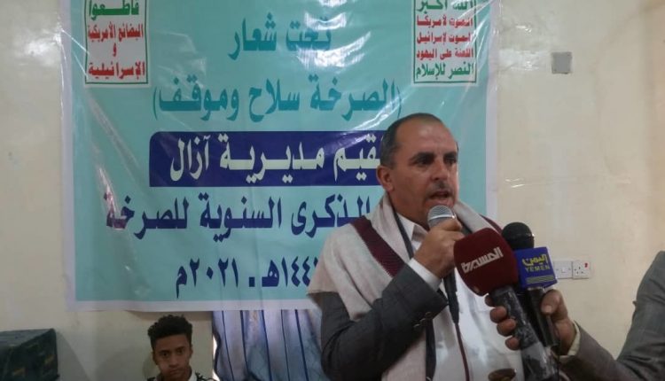 | الصمود | أقيمت اليوم بمديرية آزال في أمانة العاصمة، فعالية خطابية وثقافية بالذكرى السنوية للصرخة في وجه المستكبرين، تحت شعار “الصرخة شعار وموقف”.