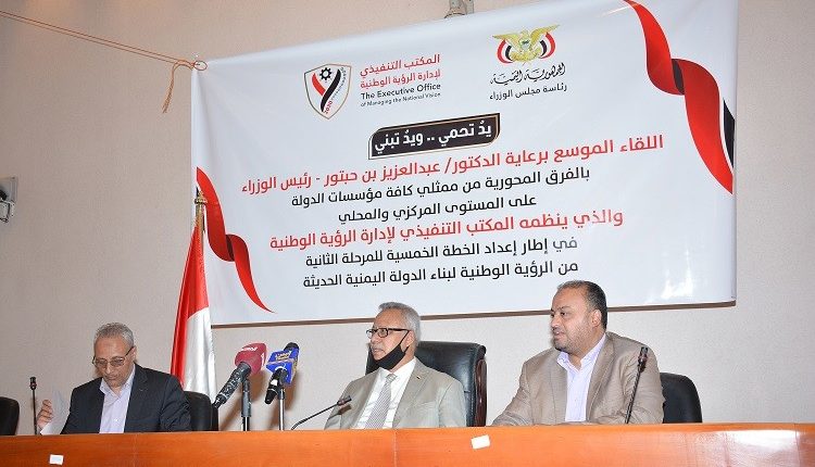 وأشار رئيس الوزراء في اللقاء الموسع الذي نظمه المكتب التنفيذي للرؤية للفرق المحورية من ممثلي كافة مؤسسات الدولة على المستويين المركزي والمحلي في إطار الإعداد للخطة المرحلية الثانية 2025-2021 م من الرؤية الوطنية، إلى أن الرؤية، إحدى النماذج المهمة التي تخدم القضية الوطنية وتتسق مع غايات الشعب اليمني لمستقبل أفضل.