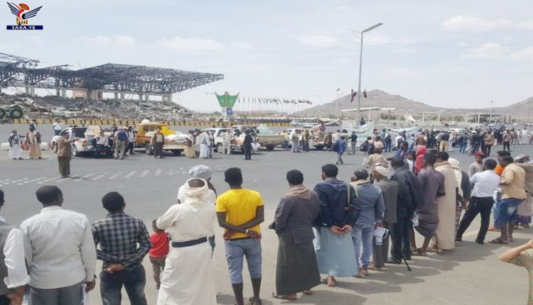 وأثناء تسيير القافلة التي تضمنت مواد غذائية ومياه وعصائر ومواشي، نظم أبناء الجاليات الإفريقية بصنعاء وقفة احتجاجية للتنديد باستمرار العدوان الأمريكي السعودي وما يفرضه من حصار بحق الشعب اليمني منذ ما يقارب سبع سنوات.