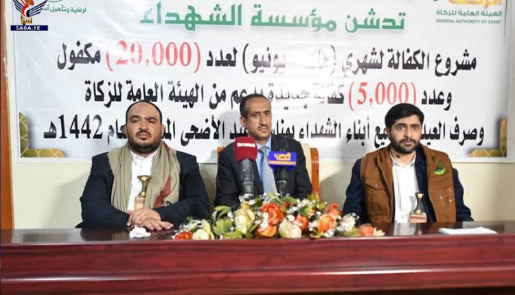 من جانبه أكد رئيس الهيئة العامة للزكاة الشيخ شمسان أبو نشطان حرص الهيئة بالشراكة مع مؤسسة الشهداء على توسيع كفالة الأيتام من أبناء الشهداء من خمسة آلاف إلى 10 آلاف مكفول.