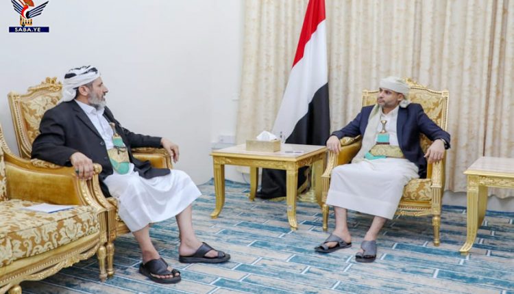 التقى فخامة المشير الركن مهدي المشاط رئيس المجلس السياسي الأعلى اليوم رئيس مجلس التلاحم القبلي الشيخ ضيف الله رسام.