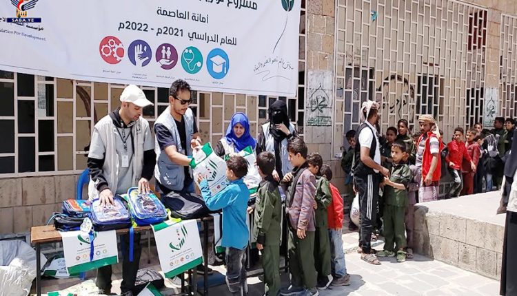 مؤسسة الشعب الاجتماعية توزع ألفين حقائب مدرسية للأيتام بصنعاء وريمة