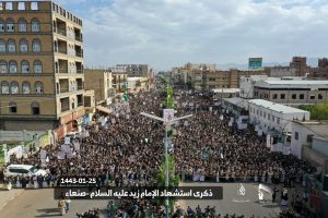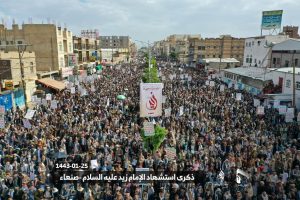 شهدت العاصمة صنعاء، عصر اليوم، مسيرة جماهيرية كبرى في ساحة شارع المطار، إحياءً لذكرى استشهاد الإمام زيد -عليه السلام- تحت شعار “بصيرة وجهاد”.