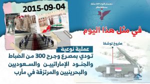 ذكرى اليوم الذي لن ينساه تحالف العدوان… يوم نوائح الخليج – ذكرى توشكا صافر On سبتمبر 4, 2021 الصمود| يصادف هذا اليوم ذكرى ضربه توشكا بصافر 2015/9/4 مشاركة