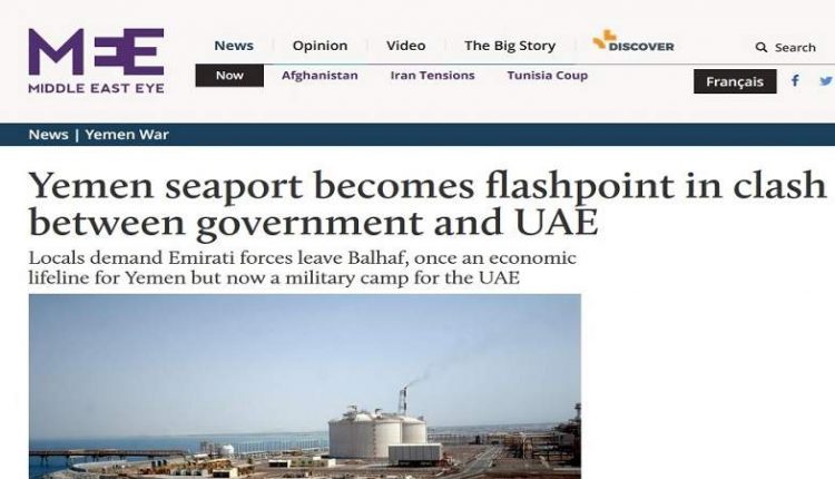 موقع “ميدل إيست آي” البريطاني : الإمارات تحول ميناء بلحاف النفطي إلى ثكنة عسكرية