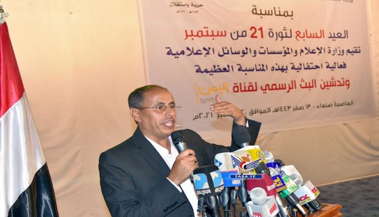 وأضاف” إن الوزارة تحتفي بالعيد السابع لثورة 21 سبتمبر، بتدشين البث الرسمي لقناة اليمن الوثائقية، بعد عام من بدء البث التجريبي.