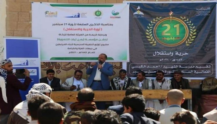 وخلال التدشين بمدرسة الشهيد الكبسي، أكد وكيل الهيئة العامة للزكاة علي السقاف استعداد الهيئة، دعم كل المشاريع الخيرية وفي مقدمتها العناية بأسر المرابطين والجرحى والأسرى.