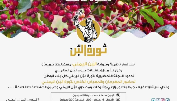 تنطلق الأربعاء المقبل بصنعاء، فعاليات مهرجان ومعرض ثورة البن اليمني تحت شعار “تنمية وحماية البن مسؤوليتنا جميعا”.
