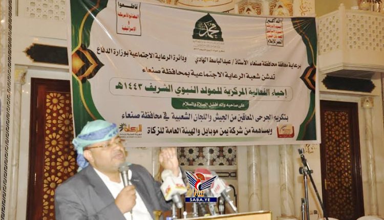 فيما اعتبر محافظ صنعاء، تكريم الجرحى المعاقين بالتزامن مع تدشين فعاليات ذكرى المولد النبوي، ترجمة لاهتمام القيادة الثورية والمجلس السياسي الأعلى بهذه الفئة والتذكير بعظمة تضحياتهم.