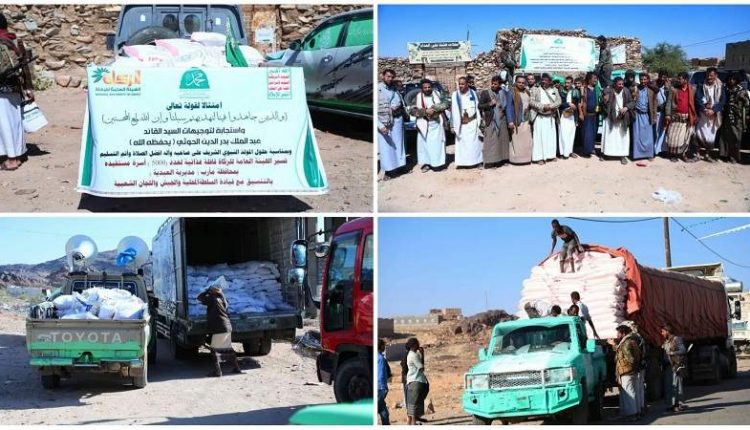 استجابة لتوجيهات قائد الثورة.. الهيئة العامة للزكاة تسير قافلة مكونة من 5 آلاف سلة غذائية لأبناء العبدية بمأرب