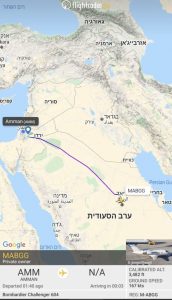 وأقلعت الطائرة يوم الإثنين في تمام “الساعة 11:21 ليلًا” من الكيان الصهيونيّ إلى “مطار الملكة علياء الدولي” في العاصمة الأردنيّة عمّان، وهي من طراز “بومباردييه تشالنجر 604″، ثم انطلقت صباح يوم الثلاثاء في “الساعة 10:08″، متجهة إلى “مطار الملك خالد الدوليّ” في السعودية – بحسب مواقع تعقّب حركة الطيران العالميّة.