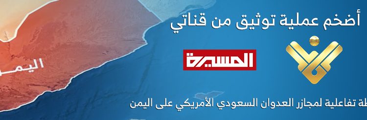 في أضخم عملية توثيق لمجازر العدوان الأمريكي السعودي الإماراتي في اليمن أطلقت قناتا المنار والمسيرة مساء أمس الجمعة خريطة تفاعلية توثّق المجازر المرتكبة وتبيّن انتشارها على امتداد اليمن بطريقة مبتكرة تسهّل عملية البحث، لكي تشكّل مرجعية للحقوقيين ووسائل الإعلام والمتخصصين والرأي العام.