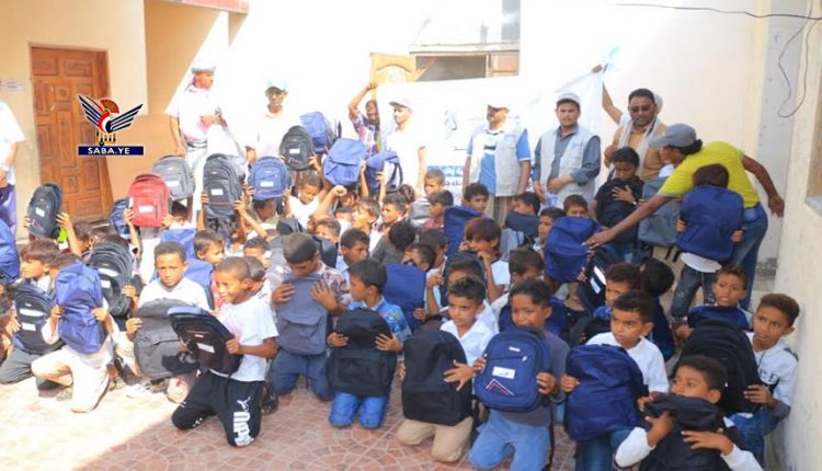 مؤسسة الريادة توزع 500 حقيبة مدرسية في جزيرة كمران بالحديدة