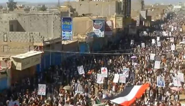مسيرة جماهيرية حاشدة رفضا للتصعيد الأمريكي واستمرار العدوان والحصار