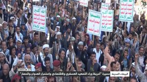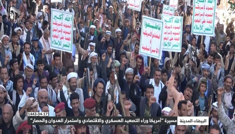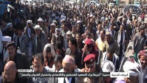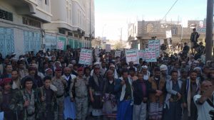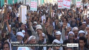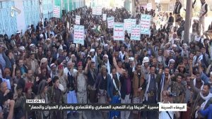 شهدت محافظة البيضاء اليوم مسيرة جماهيرية حاشدة تحت شعار “أمريكا وراء التصعيد العسكري الاقتصادي واستمرار العدوان والحصار”.