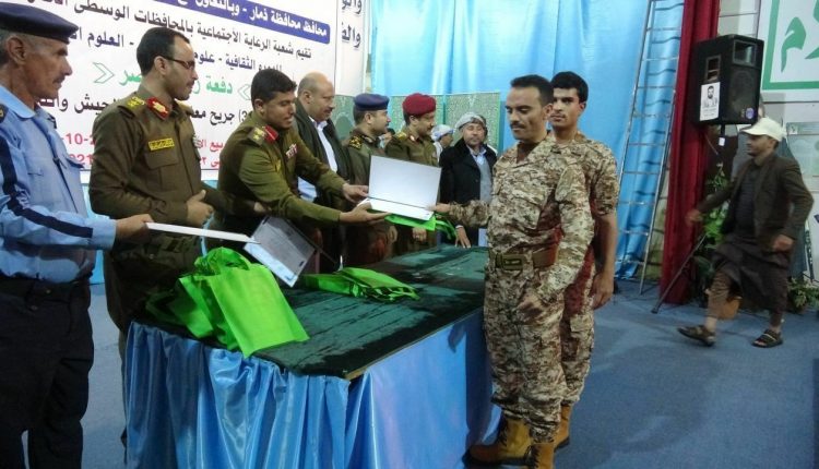 نظَّمت شعبة الرعاية الاجتماعية في المحافظات الوسطى التابعة لوزارة الدفاع، اليوم، في ذمار حفلاً ختامياً لدورة العلوم الإدارية والحاسوب، التي استهدفت على مدى شهر 30 متدرباً من جرحى الجيش واللجان الشعبية “دفعة ربيع النصر”.
