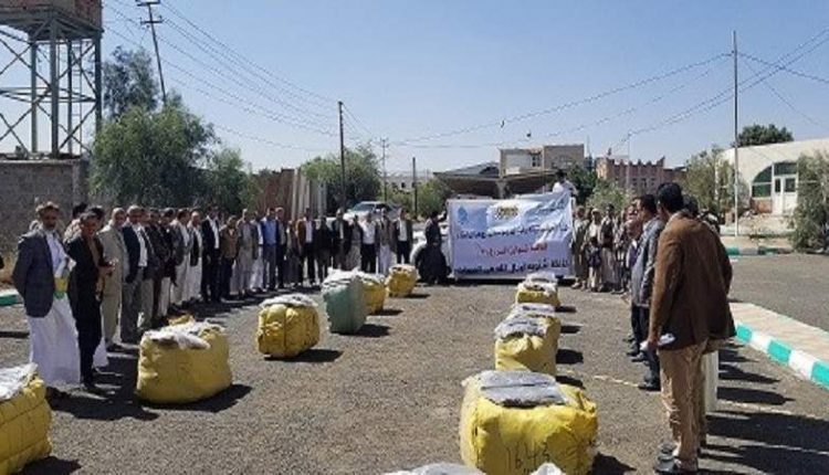 وخلال تقدّيم القافلة التي احتوت على ملابس شتوية، نظم موظفو وزارة المياه والبيئة والهيئات والمؤسسات والوحدات التابعة لها وقفة احتجاجية للتنديد بجرائم وانتهاكات تحالف العدوان الأمريكي السعودي بحق الشعب اليمني منذ ما يقارب سبع سنوات.