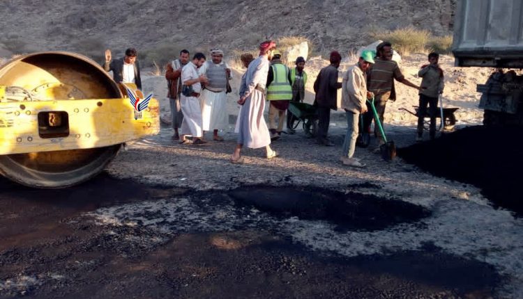 حيث اطلع المحافظ طعيمان، على أعمال السفلتة والترميم والصيانة في الخط الرئيسي الذي يربط بين محافظتي مأرب البيضاء.