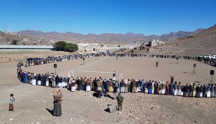 أبناء مديرية جحانة بصنعاء ينظمون وقفة احتجاجية تنديداً باستمرار الحصار والعدوان