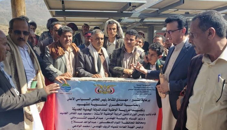 حيث افتتح الوزير الشرماني مشروع تركيب وتشغيل منظومة طاقة شمسية متكاملة لتشغيل بئر فرع مؤسسة المياه بالمديرية مع الأربع المراحل وتوريد مكاتب وأجهزة كمبيوتر، تمويل الوكالة الألمانية للتعاون الدولي “جي آي زد”، بتكلفة إجمالية 202 مليون و800 ألف ريال.