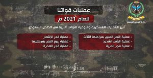 وأشار العميد سريع أن قواتنا نفذت خلال 2021م عددا من العمليات النوعية منها:
