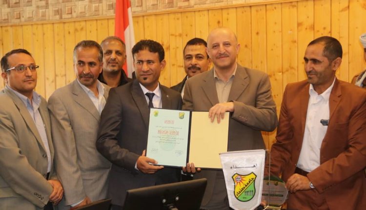 جامعة صنعاء تكرّم مدرب المنتخب الوطني للناشئين بدرع الجامعة