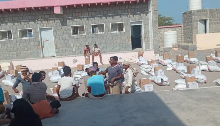 توزيع سلال غذائية ومواد إيوائية للأسر المتضررة في الدريهمي بالحديدة