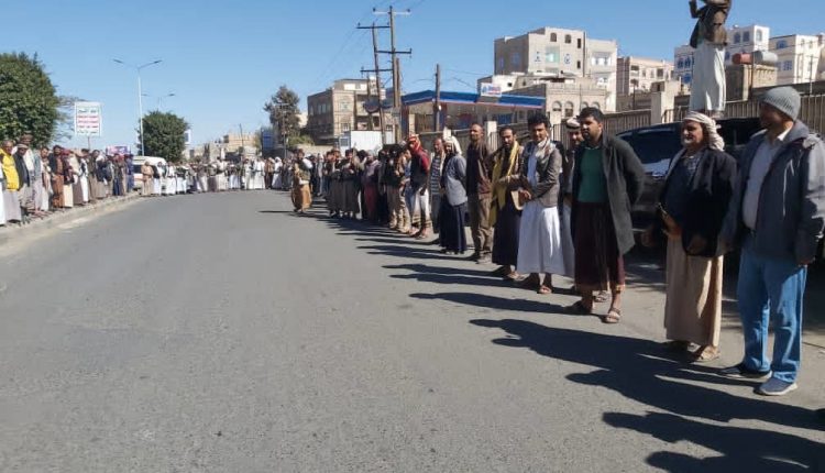 نظمت بمديرية السبعين بأمانة العاصمة اليوم، وقفات احتجاجية استنكاراً ورفضاً لتصعيد وحصار العدوان الأمريكي السعودي الإماراتي تحت شعار “مواجهة التصعيد بالتصعيد”.