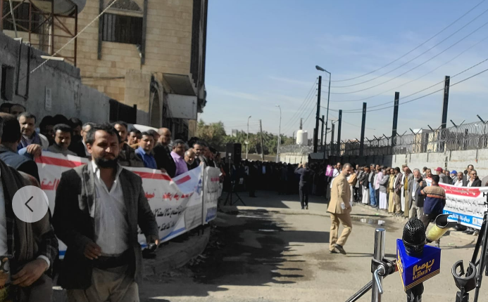 الصمود | نظم موظفو قطاع وشركات الاتصالات والبريد اليوم، وقفة احتجاجية أمام مكتب الأمم المتحدة بصنعاء للتنديد باستمرار تحالف العدوان الأمريكي السعودي الإماراتي في احتجاز سفن المشتقات النفطية .