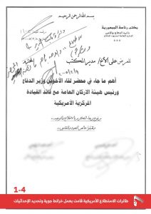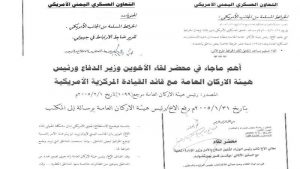 وأوضحت الوثائق السرية، تلقت وكالة الأنباء اليمنية (سبأ) نسخة منها، مدى التنسيق لزيارة قائد القوات الأمريكية في منطقة القرن الإفريقي لليمن ولقائه بقادة وزارتي الدفاع والداخلية بالعاصمة صنعاء خلال الحرب الأولى على الشهيد القائد.