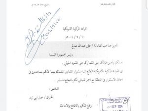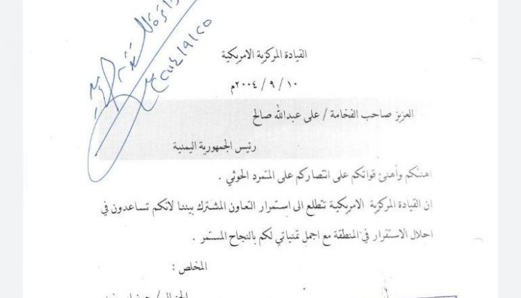 4 – رسالة شكر من قائد القيادة المركزية الأمريكية لعلي عبدالله صالح بتاريخ 10/9/2004م