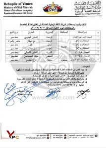 كشف بأسماء محطات البنزين العاملة في محطات الشركة بأمانة العاصمة والمحافظات ليوم غد الإثنين 07 مارس 2022م وبالسعر الرسمي من الكمية الواردة عبر ميناء الحديدة على السفينة الإسعافية “سي ادور” بالسعر(9900) ريال للدبة 20 لتر.