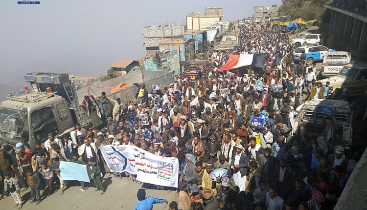 مسيرة جماهيرية حاشدة في ريمة بعنوان”حصار المشتقات النفطية قرار أمريكي وخيارنا إعصار اليمن”