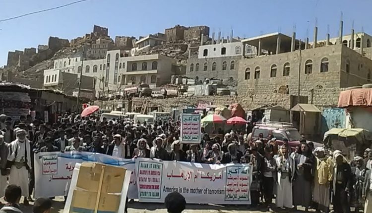 مسيرة حاشدة في كحلان الشرف بحجة دعماً لحملة إعصار اليمن