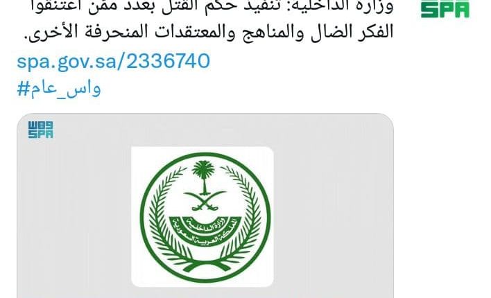 أعلنت وزارة الداخلية السعودية اليوم السبت،تنفيذ حملة إعدام جماعية للعشرات من مواطني المملكة بينهم يمنيون أيضا بذريعة ما أسمته اعتناقهم للأفكار الضالة والمعتقدات المنحرفة حسب زعمها.