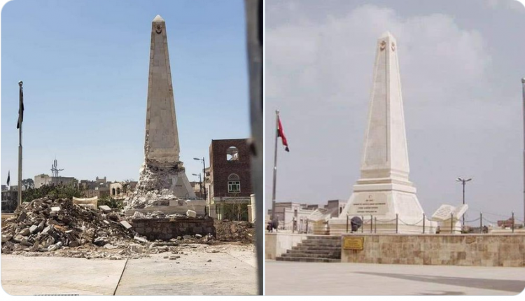 شاهد: ارتياح شعبي واسع بإزالة النصب التذكاري التركي من وسط العاصمة صنعاء + (فيديو)