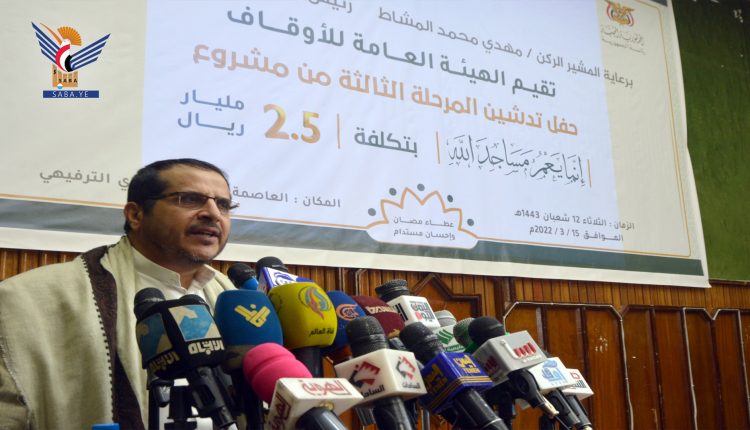 وأوضح العلامة الحوثي في تصريح لوكالة الأنباء اليمنية (سبأ) أن المرحلة الثالثة من المشروع تستهدف أربعة آلاف مسجد، وثلاثة آلاف عامل ولا يوجد في خطة الهيئة بناء أي مساجد جديدة .. مشيراً إلى أن المشروع يأتي في إطار الاستعدادات لاستقبال شهر رمضان المبارك.