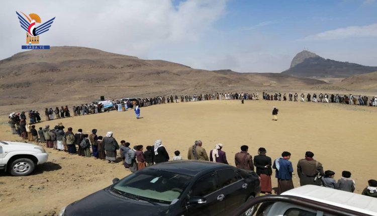 وأكد المشاركون في الوقفة بحضور مدير المديرية محمد البشيري وقيادات التحشيد والتعبئة بالمحافظة، أهمية تفاعل الجميع لدعم الحملة وتعزيز مسار الصمود والثبات في مواجهة دول العدوان الأمريكي السعودي الإماراتي.