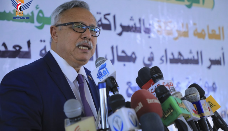 وعبّر رئيس الوزراء، لدى مشاركته تدشين مشروع تمكين أسر الشهداء في مجال الخياطة لـ200 أسرة موزّعة على سبع محافظات تموله الهيئة العامة للزكاة بالشراكة مع مؤسسة الشهداء تحت شعار “الوفاء لأهل الوفاء”، عن الشكر لهيئة الزكاة ومؤسسة الشهداء على هذا النشاط، وغيره من الأنشطة القيمة، ولكل من يعمل في هذا المسار الذي يُعد من الأعمال المحسوبة وطنياً وأخلاقياً وإنسانياً.